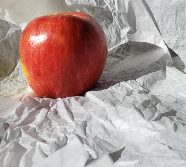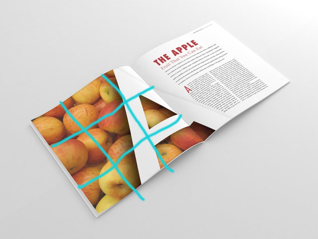 I wanted to stick with the apple theme so I have included these three pictures that could replace the original photo in the magazine spread. All follow the rule of thirds. In the first picture I put the apple in upper left hand corner, opposite of where the big letter A would go. I chose red to contrast with the white of the A. In the middle I tried to recreate the original picture but used a red apple in the corner also following the rule of thirds. Last I have a picture of a single apple. The stem will follow along with the lines of the A, matching up with the leading lines.
